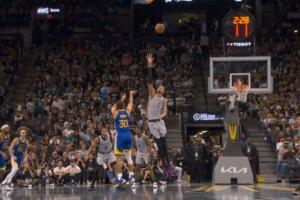 想起一些不好的回憶……庫(kù)里迎著文班撤步三分 文班頗有些無(wú)奈啊