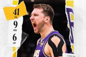 統(tǒng)治比賽!湖人發(fā)布東契奇41+9+6數(shù)據(jù)海報(bào):賽季第四次單場(chǎng)40+