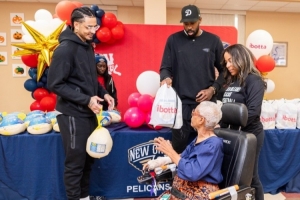 臨近感恩節(jié)!小喬丹&皮維代表鵜鶘回饋社區(qū) 給居民送火雞等食材