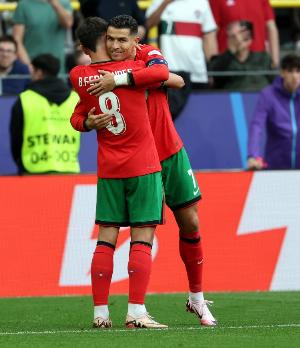 體育資訊11月17日訊 世預(yù)賽歐洲區(qū)小組賽,葡萄牙在主場(chǎng)迎戰(zhàn)亞美尼亞。本場(chǎng)比賽,葡萄牙中場(chǎng)布魯諾-費(fèi)爾南德斯上演國(guó)家隊(duì)生涯首個(gè)帽子戲法,這讓他為葡萄牙的進(jìn)球數(shù)量達(dá)到了28球,躋身隊(duì)史第6位。