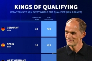 德轉(zhuǎn)盤點(diǎn)歐洲世預(yù)賽全勝球隊(duì):德國、西班牙、英格蘭、荷蘭在列