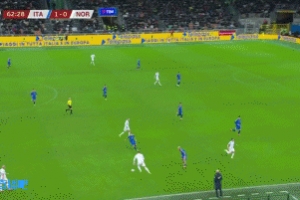 意大利首發(fā):1-多納魯馬、22-迪洛倫佐、23-曼奇尼、21-巴斯托尼、7-波利塔諾、18-巴雷拉、5-洛卡特利、15-弗拉泰西、3-迪馬爾科、9-雷特吉、18-埃斯波西托