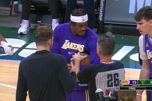 體育資訊11月17日訊 昨日湖人戰(zhàn)勝雄鹿的賽后,雙方球員以及裁判針對(duì)比賽用球展開(kāi)了一段拉扯。