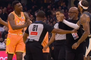 布萊恩特?fù)跞藭r(shí)推倒特倫特引發(fā)小沖突&布萊恩特吃T 隨后兩人和解