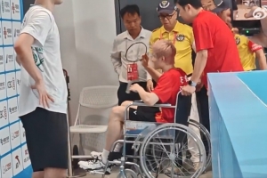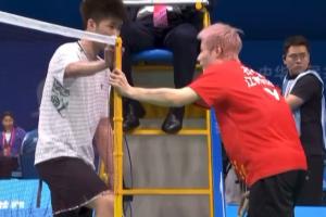 全運(yùn)會(huì)羽毛球男單1/4決賽,石宇奇先勝一局后因傷退賽