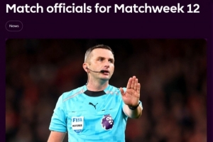 英超第12輪裁判:奧利弗執(zhí)法北倫敦德比,VAR阿特維爾