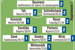 德國隊(duì)圖片報(bào)評(píng)分:基米希、薩內(nèi)、維爾茨、沃爾特馬德最高