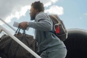 尼克斯官方發(fā)布球員登機照 “小熊”亞布塞萊翹臀格外搶眼