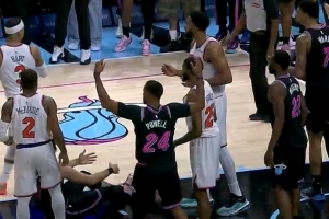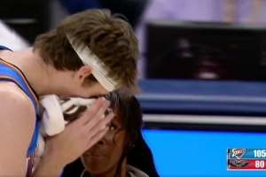 看著挺疼!卡爾森補(bǔ)籃被米西犯規(guī) 血灑賽場
