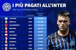 國(guó)米稅前年薪排名:勞塔羅1660萬歐居首,四名球員超1000萬歐