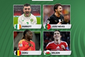 歐洲世預(yù)賽本輪最佳球員候選:帕洛特、內(nèi)維斯、多庫(kù)、威爾遜在列