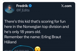 2018年記者報道挪威天才少年,哈蘭德社媒調(diào)侃:我記得這個名字