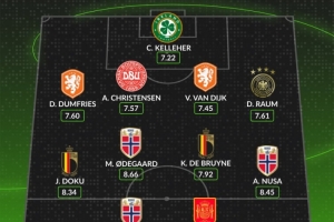 whoscored世歐預(yù)最佳陣:范戴克、哈蘭德領(lǐng)銜,厄德高、丁丁在列