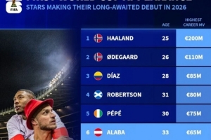 德轉(zhuǎn)列有望世界杯首秀名將:哈蘭德、厄德高、迪亞斯、阿拉巴在列
