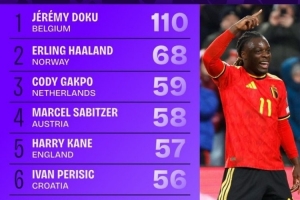 世歐預(yù)對(duì)方禁區(qū)觸球榜:多庫斷崖領(lǐng)跑,哈蘭德、加克波、凱恩在列