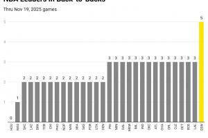 熬老頭?賽季至今各隊平均2.5個背靠背 勇士卻有5個!