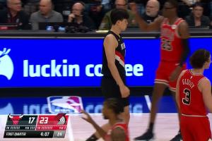 來了!楊瀚森在場邊等了足足2分多鐘 首節(jié)4分07秒終于上場