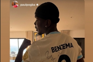 博格巴社媒曬身穿本澤馬簽名球衣照片,本澤馬轉(zhuǎn)發(fā)動(dòng)態(tài)