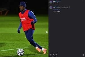 此前左膝扭傷,巴黎官方曬照:努諾·門德斯參加球隊訓練