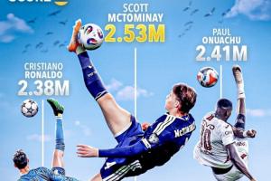 破世界紀錄!麥克托米奈倒鉤破門腳尖高度2.53米,超越奧努阿楚