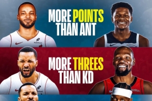 本賽季鮑威爾場(chǎng)均25.4分>華子 3.3個(gè)三分>KD 命中率49.5%>庫里