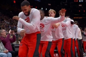 詞窮了!猛龍賽前儀式:排長(zhǎng)龍熱身 坦普爾突然瘋狂舞動(dòng)