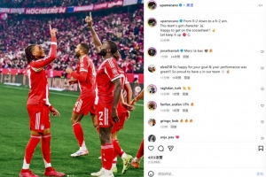 于帕也在賽后通過社媒曬出自己的慶祝照,并配文:“從0-2落后到6-2取勝,這支球隊就是這么有韌性。很高興打開進(jìn)球賬戶,讓我們繼續(xù)前進(jìn)!”