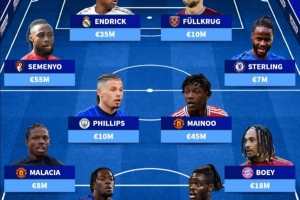 前鋒:塞梅尼奧(伯恩茅斯)5500萬(wàn)歐、恩德里克(皇馬)3500萬(wàn)歐、菲爾克魯格(西漢姆聯(lián))1000萬(wàn)歐、斯特林(切爾西)700萬(wàn)歐