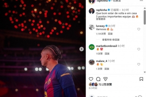 諾坎普首戰(zhàn)傷愈回歸,拉菲尼亞社媒紀(jì)念:回到家的感覺真好!