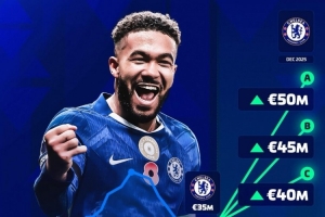 德轉(zhuǎn)預(yù)熱里斯·詹姆斯身價(jià)變化:最高5000萬歐,最低4000萬歐