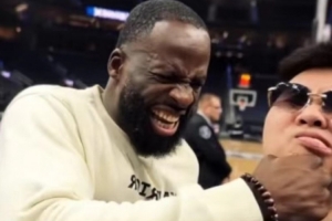 體育資訊11月25日訊 NBA常規(guī)賽,勇士134-117戰(zhàn)勝爵士。比賽中,中國歌手攬佬SKAIISYOURGOD現(xiàn)身場邊,給勇士助陣。