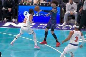 GIF-拉梅洛·鮑爾欲單手秒傳 直接結結實實砸到了布倫森的腦袋