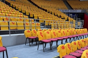 氣氛到位了!五棵松看臺(tái)鋪滿“為夢(mèng)想,正當(dāng)燃”助威T恤