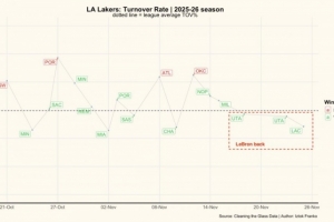 湖人4場失利失誤率均高于20% 詹姆斯回歸后連續(xù)3場低于聯(lián)盟平均線