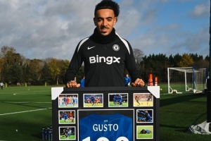 此役是古斯托為切爾西出戰(zhàn)的第100場比賽,他總計打進1球,助攻14次。古斯托獲贈藍軍生涯百場紀(jì)念球衣,切爾西社媒曬出他與紀(jì)念球衣的合照。