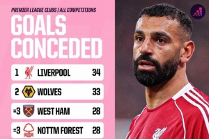 本賽季英超球隊各賽事丟球榜:利物浦34球最多,狼隊33球次席