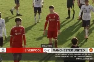 曼聯(lián)U18以7-0大勝利物浦U18,15歲新星JJ·加布里埃爾戴帽