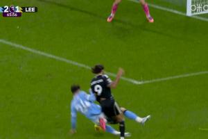 體育資訊11月30日訊 曼城vs利茲聯(lián)第66分鐘,格瓦迪奧爾飛鏟直接放倒了勒溫,裁判判罰點(diǎn)球,外加黃牌一張!恩梅查點(diǎn)射沒(méi)進(jìn),但是補(bǔ)射進(jìn)了。此時(shí)比分變?yōu)槁?-2利茲聯(lián)。