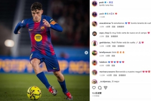 傷愈替補(bǔ)登場(chǎng)30分鐘!佩德里社媒曬比賽照紀(jì)念復(fù)出:歸來!