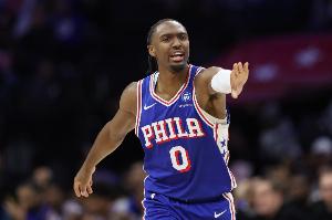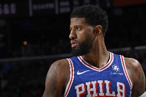 真不容易!喬治突破歐洲步壓哨上籃 76人終止末節(jié)4分多鐘得分荒