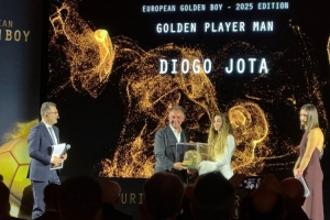 若塔獲頒金童獎(jiǎng)的年度金球員獎(jiǎng),遺孀代領(lǐng)獎(jiǎng)項(xiàng):感謝大家還記得他
