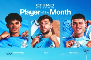 體育資訊12月1日訊 曼城官方公布11月隊內(nèi)最佳候選,奧賴?yán)⒛峥啤_雷斯、福登三人入圍。