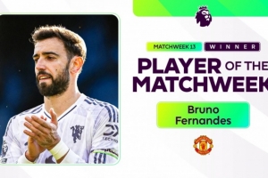 體育資訊12月2日訊 英超官方消息,曼聯(lián)中場(chǎng)B費(fèi)當(dāng)選第13輪英超的最佳球員。
