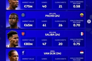德轉評選年度最佳中衛(wèi)名單:加布、薩利巴、范戴克、帕喬在列