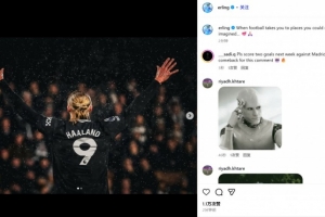 哈蘭德社媒紀(jì)念英超100球里程碑:足球帶我來到從未想象過的地方