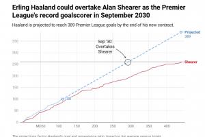 天空預(yù)測:按目前效率哈蘭德2030年9月破希勒260球紀(jì)錄,屆時30歲