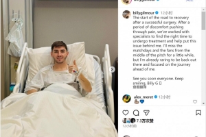 “接下來(lái)的一段日子,我會(huì)想念比賽日和球迷們,但我已迫不及待重返賽場(chǎng),并將全力專注于眼前的康復(fù)征程。大家很快再見。保持微笑,比利(吉爾莫)!”