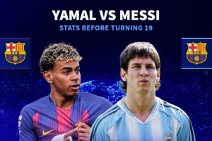 球員19歲之前數(shù)據(jù):亞馬爾38球55助,梅西11球9助,C羅6球11助