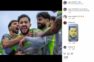 他也在賽后通過社媒曬出自己被隊友簇擁的慶祝照,并配文:“節(jié)禮日之戰(zhàn),感謝全隊和球迷們!”