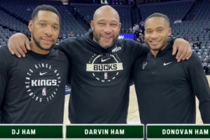 這場比賽對雄鹿助教達(dá)爾文·哈姆來說有點(diǎn)特別,因?yàn)楸緢霰荣愃膬蓚€兒子都出現(xiàn)在了本場比賽的球隊(duì)團(tuán)隊(duì)當(dāng)中。